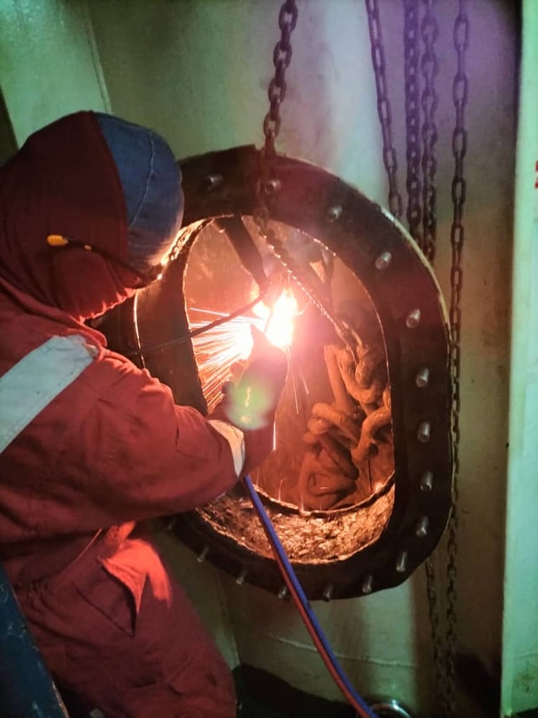 Pre Dry Dock Hot Work Stoppage Work at Anchorage. Fabrication and Repair.