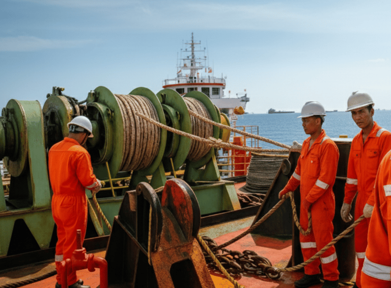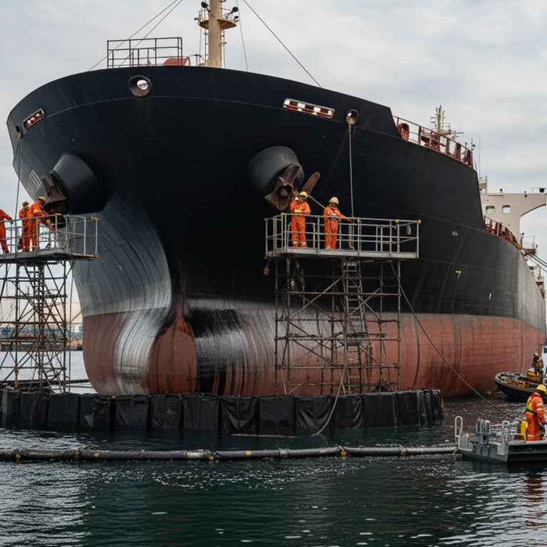 Cleaning, descaling and painting the ship’s deck and superstructure to prevent corrosion.